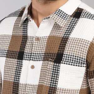 Tartan Checks Spread Collar Long Sleeves Slim Fit Cotton Casual Shirt