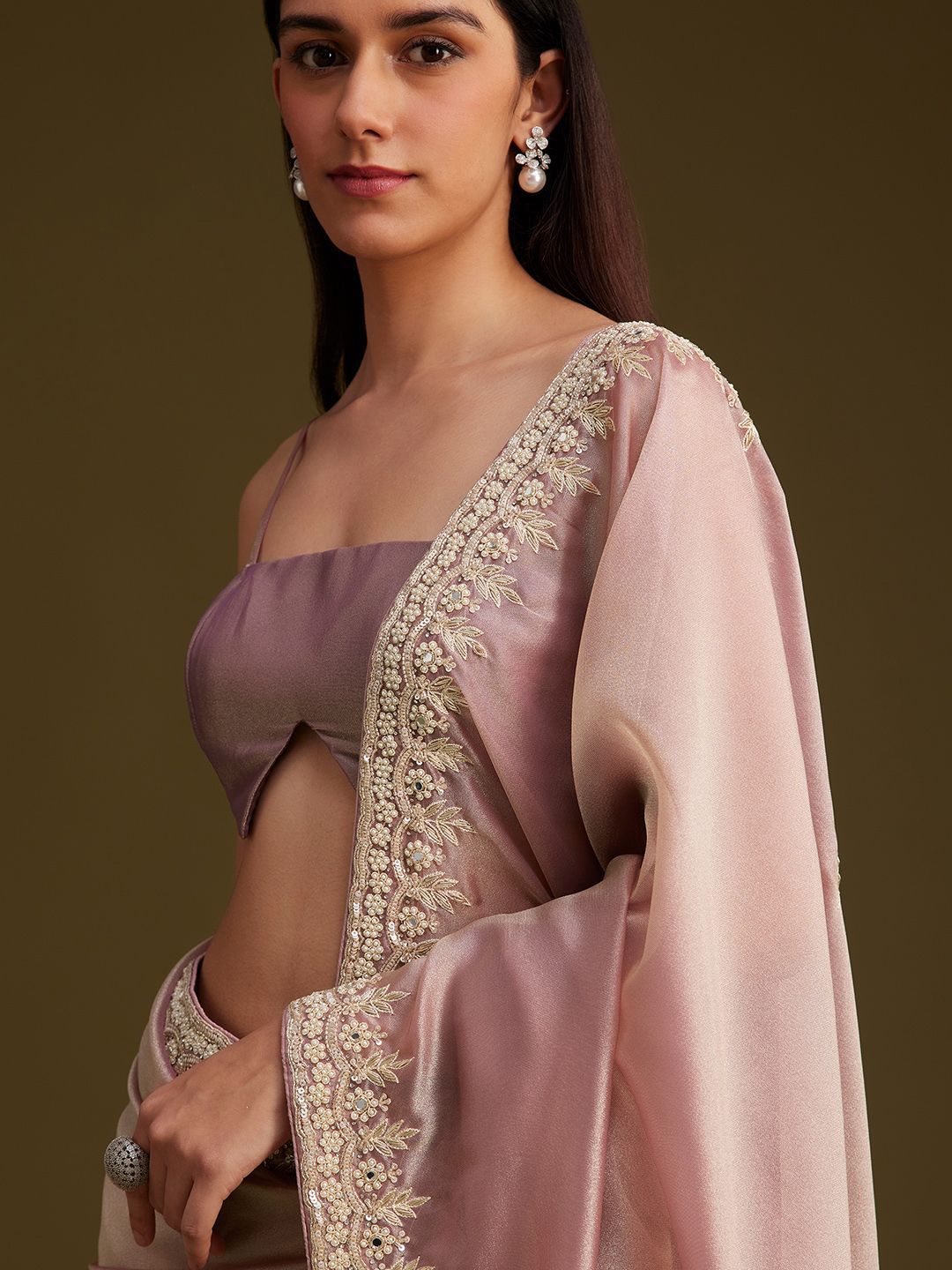 - Embellished embroidered saree with embroidered border